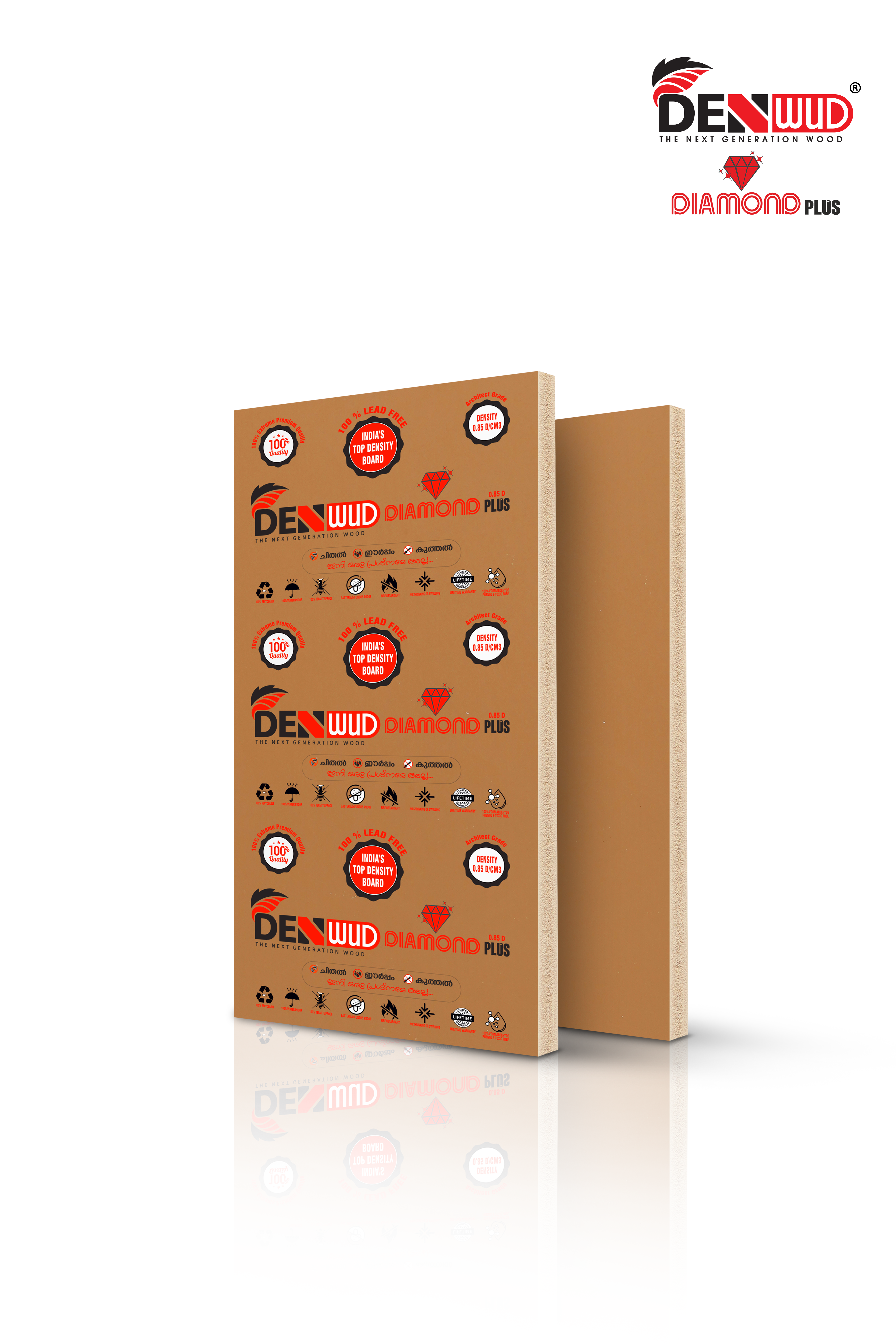 The premium product in the range, Denwud Diamond Plus, features a record 0.85 density, lead-free construction and a lifetime warranty. Developed primarily for architects and high-profile spaces, it offers unparalleled strength, health, safety & flawless finishing – making it India’s strongest & safest WPC board.